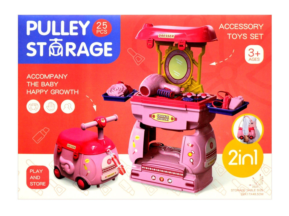 Toaletka jeździk - zestaw kosmetyczny w walizce - 25 elementów 2w1