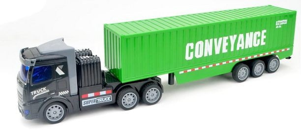 Ciężarówka z przyczepą w formie kontenera wiernie odwzorowuje prawdziwy pojazd. Na naczepie ciężarówki znajdują się realistyczne grafiki dzięki czemu pojazd prezentuje się bardzo okazale. Z całą pewnością zabawka zachwyci wszystkich małych miłośników motoryzacji, sprawiając im sporo radości.