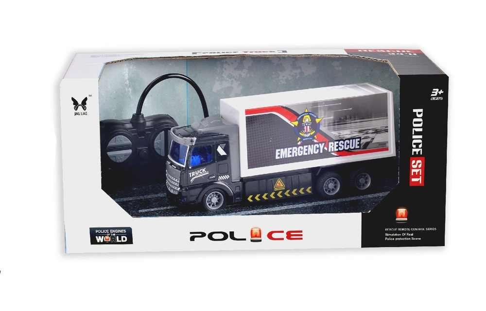 Ciężarówka z naczepą wiernie odwzorowuje prawdziwy pojazd. Do sterowania ciężarówką służy wygodny, prosty w obsłudze pilot. Z całą pewnością zabawka z efektami świetlnymi w kabinie zachwyci wszystkich małych miłośników motoryzacji, sprawiając im sporo radości.