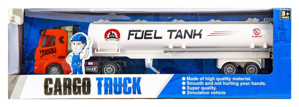 Ciężarówka z cysterną do przewożenia paliw wiernie odwzorowuje prawdziwy pojazd. Posiada napęd typu pullback. Na naczepie ciężarówki znajdują się realistyczne grafiki, dzięki czemu pojazd prezentuje się bardzo okazale. Z całą pewnością zabawka zachwyci wszystkich małych miłośników motoryzacji, sprawiając im sporo radości.