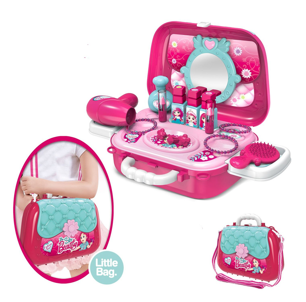 Kosmetyki, piękne bransoletki i akcesoria do włosów to pomysł na doskonałą zabawę każdej małej dziewczynki. W zestawie znajdują się różnego rodzaju przybory toaletowe, bransoletki oraz imitacje kolorowych kosmetyków i perfum, a wszystko to zapakowane w wyjątkowo poręczną walizeczkę, którą dziecko może zabrać w podróż.