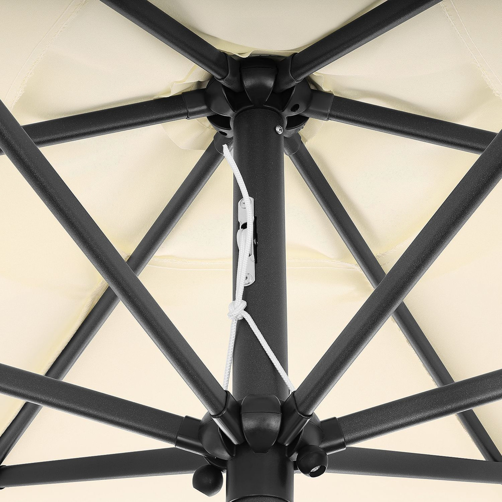 Parasol ogrodowy składa się z solidnej metalowej konstrukcji, która gwarantuje stabilność i trwałość. Metalowy stelaż jest pokryty warstwą antykorozyjną, co zabezpiecza parasol przed negatywnym wpływem warunków atmosferycznych, takich jak deszcz czy słońce.