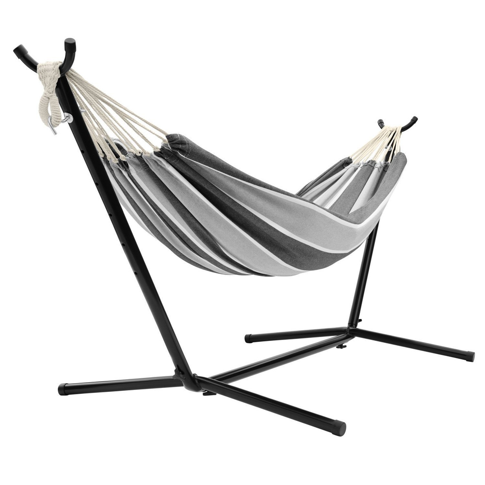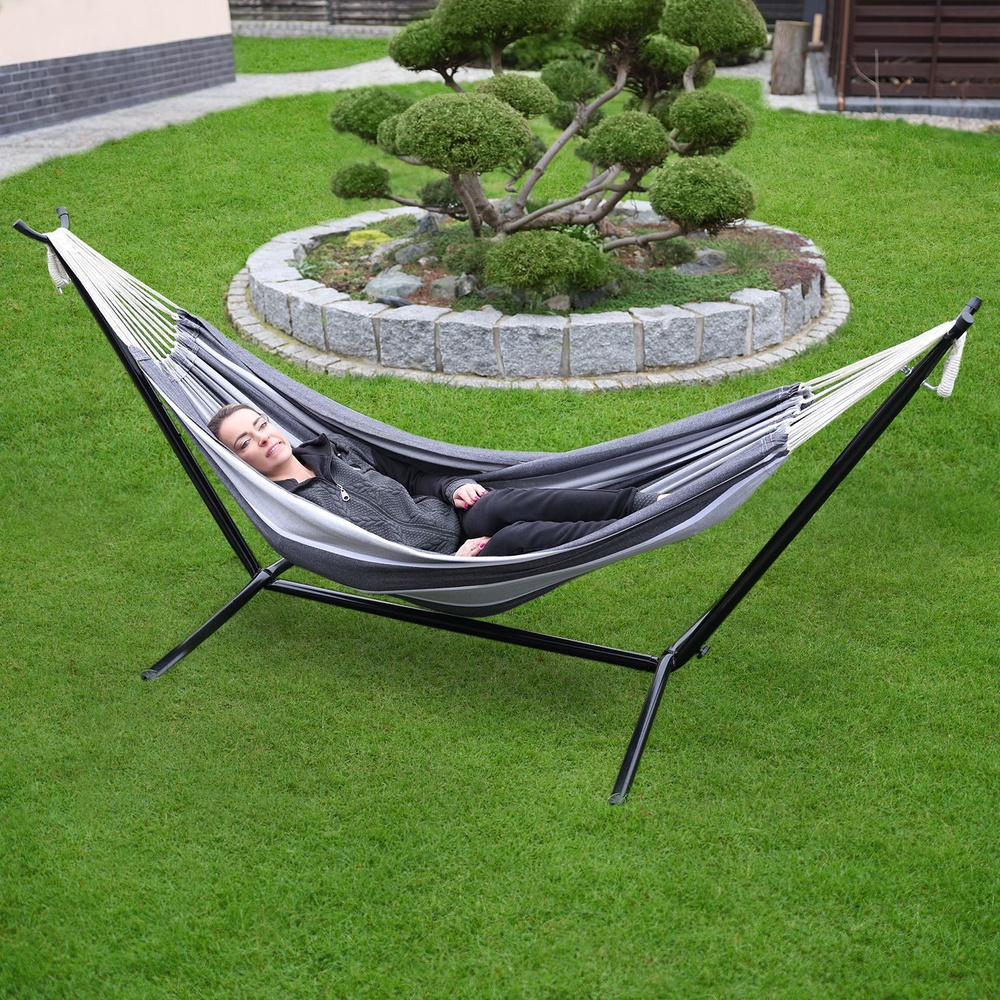 Nic tak nie odpręża, jak wypoczynek na świeżym powietrzu podczas ciepłych, letnich dni. Efektowny wygląd naszego hamaka zawieszonego na metalowym stelażu sprawi, że będzie on uzupełnieniem każdego ogrodu lub tarasu, nadając przy tym beztroskiego charakteru.