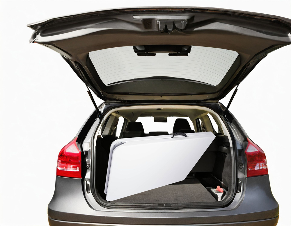 Cała konstrukcja mieści się w blacie stołu, tworząc ergonomiczną walizkę.