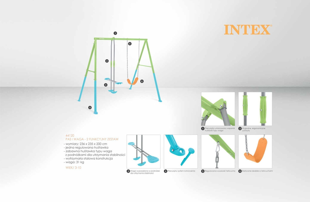 Solidna kolorowa huśtawka ogrodowa 2 funkcje pas i waga Intex 44120