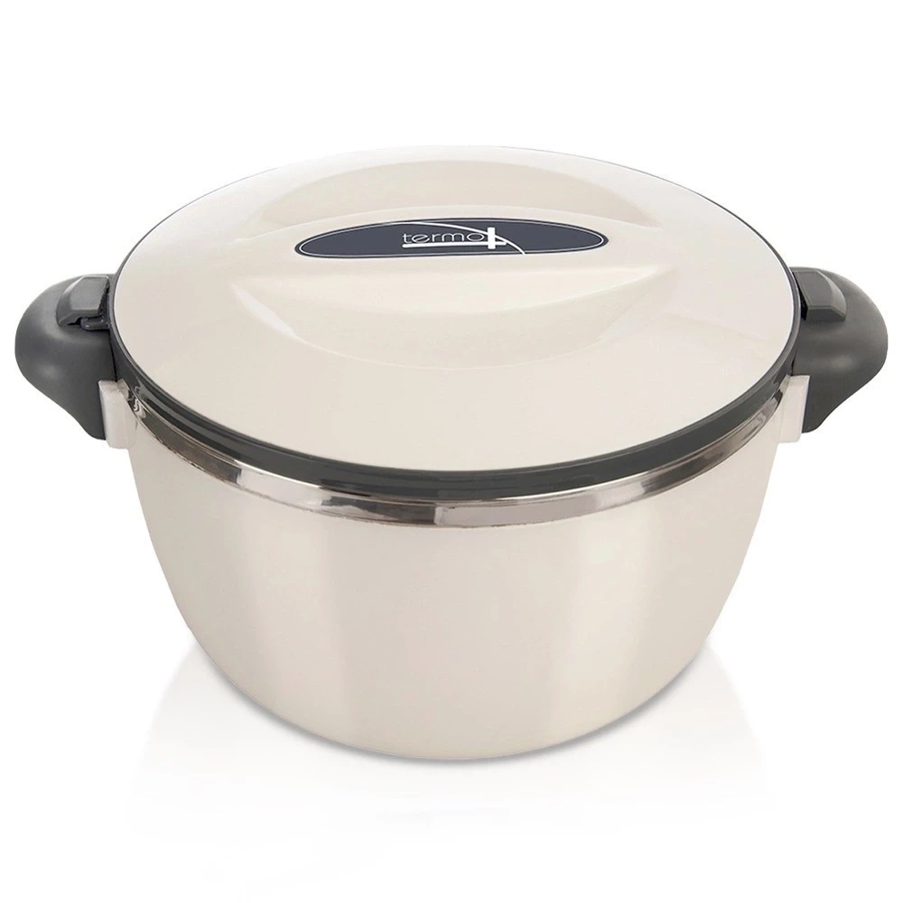 - Termos obiadowy o pojemności 2 l - Termomisa zapewni utrzymywanie ciepła lub zimna przechowywanych potraw. Termos obiadowy ma pojemność 2 l. Termomisa ma wymiary 26 x 20 x 12,5 cm. Termomisa nie jest w 100% szczelna, żywność należy przenosić w pozycji pionowej by uniknąć wylania zawartości. Termomisa z serii Termo.