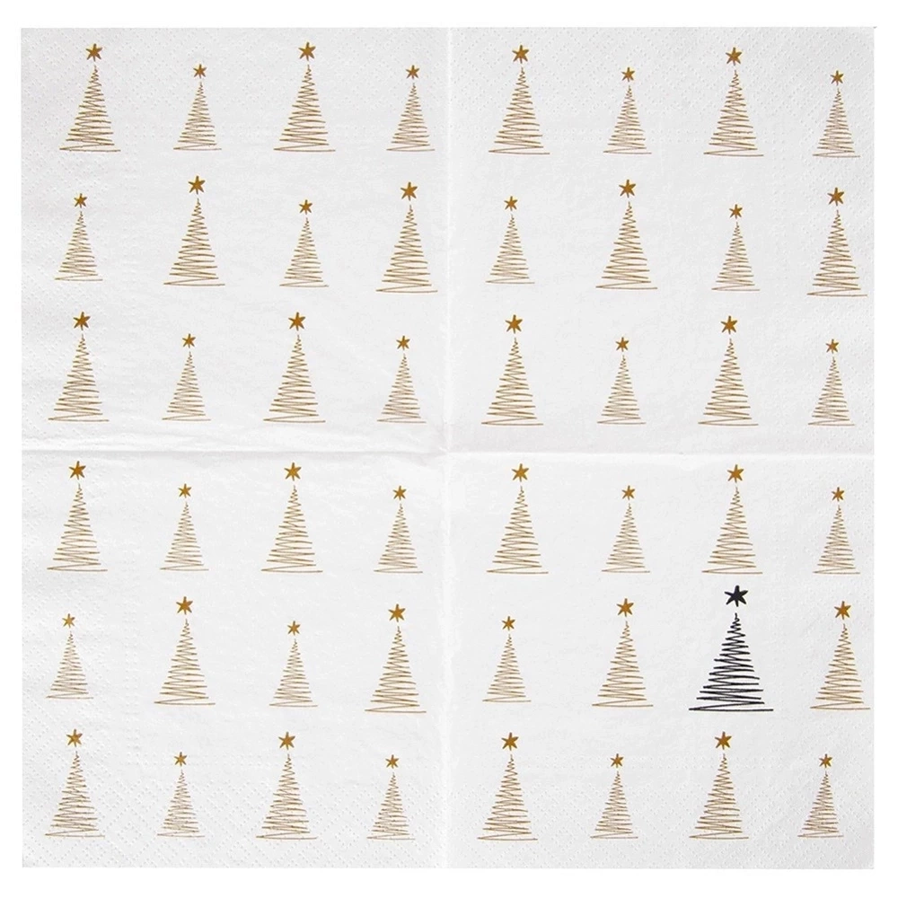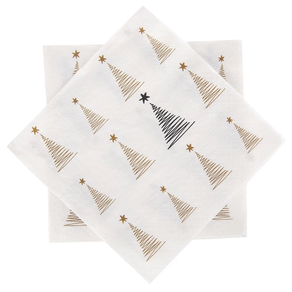 - Świąteczny motyw choinki - Wykonane z papieru w kolorze białym z eleganckim złotym nadrukiem choinek, które wprowadzą ciepły, świąteczny nastrój na Twoim stole.