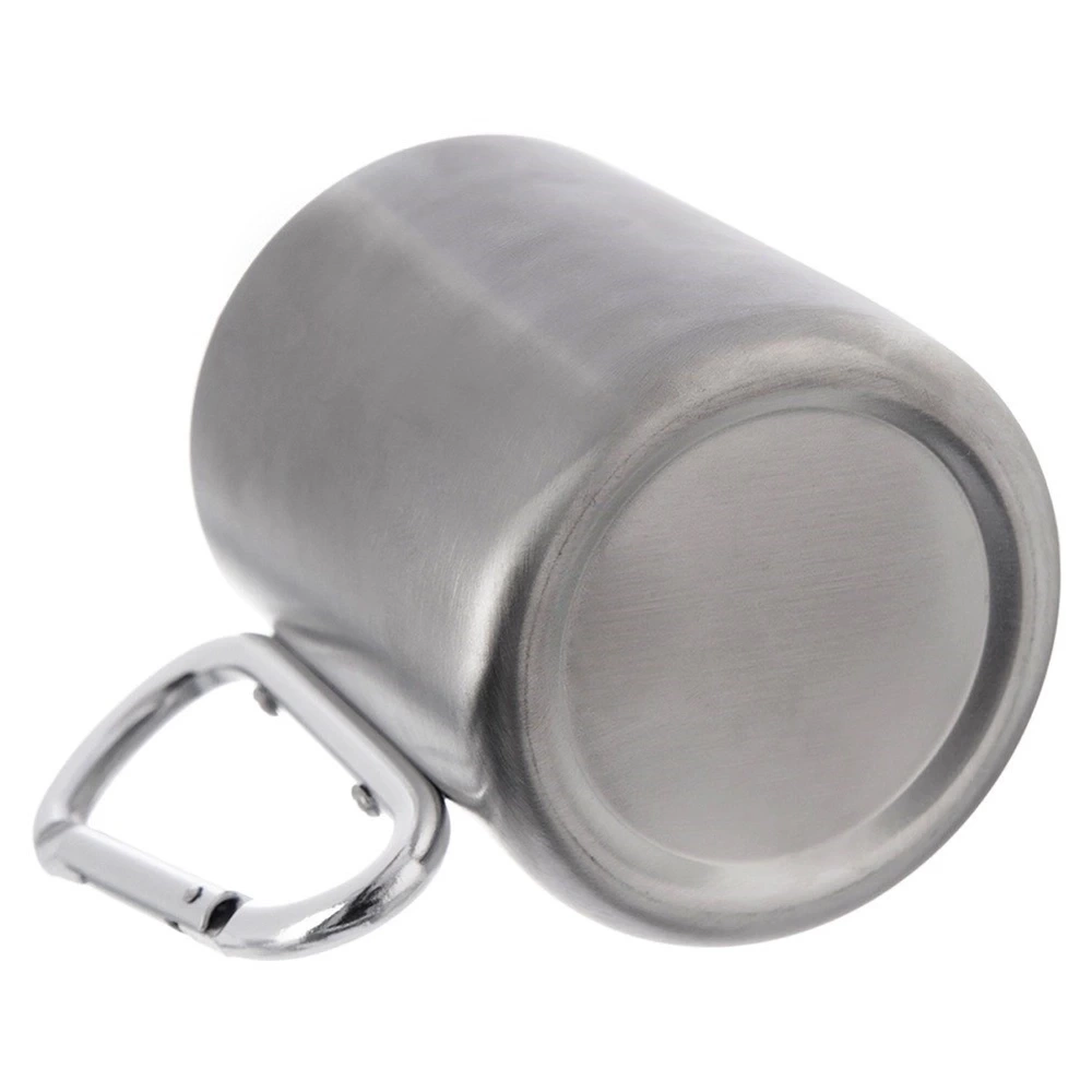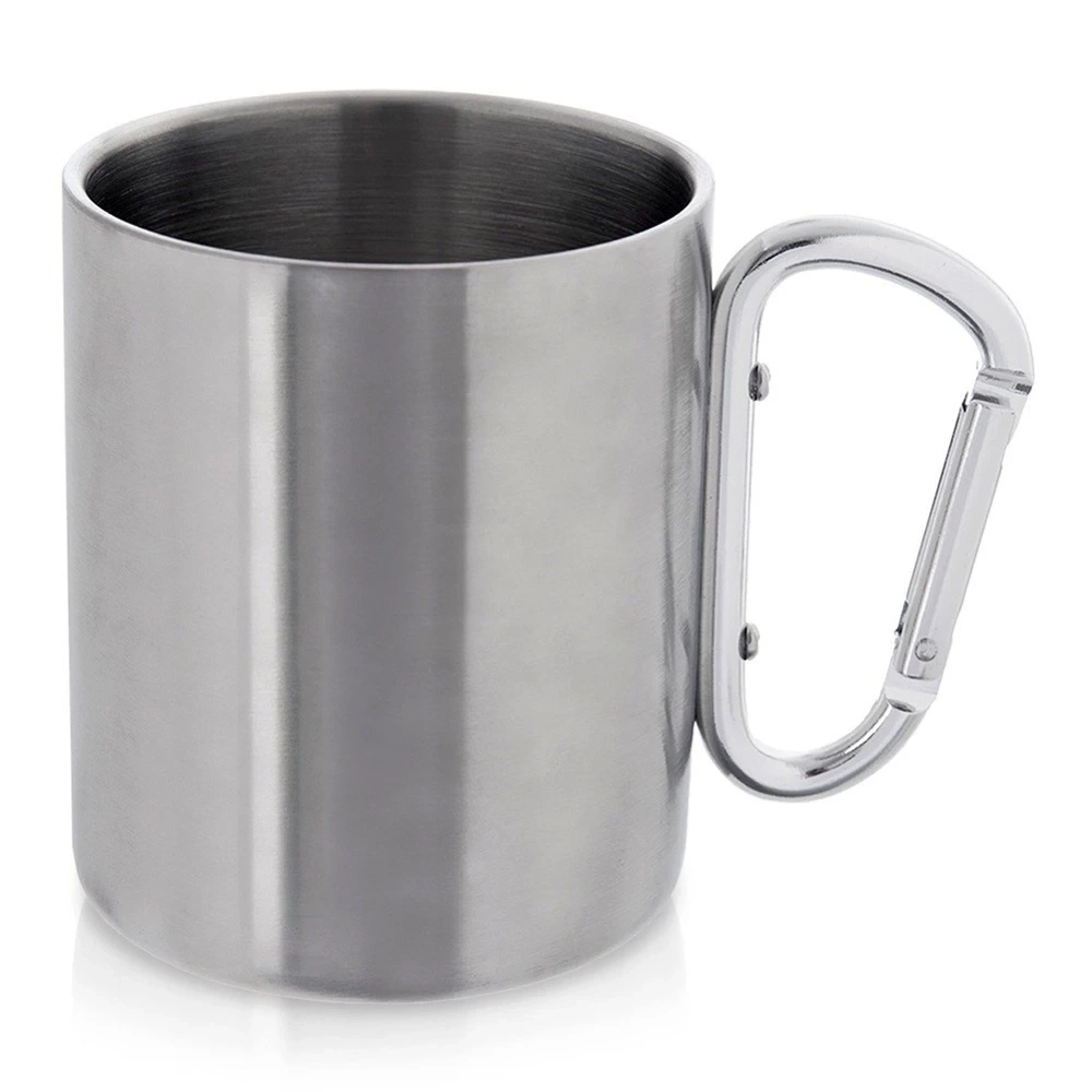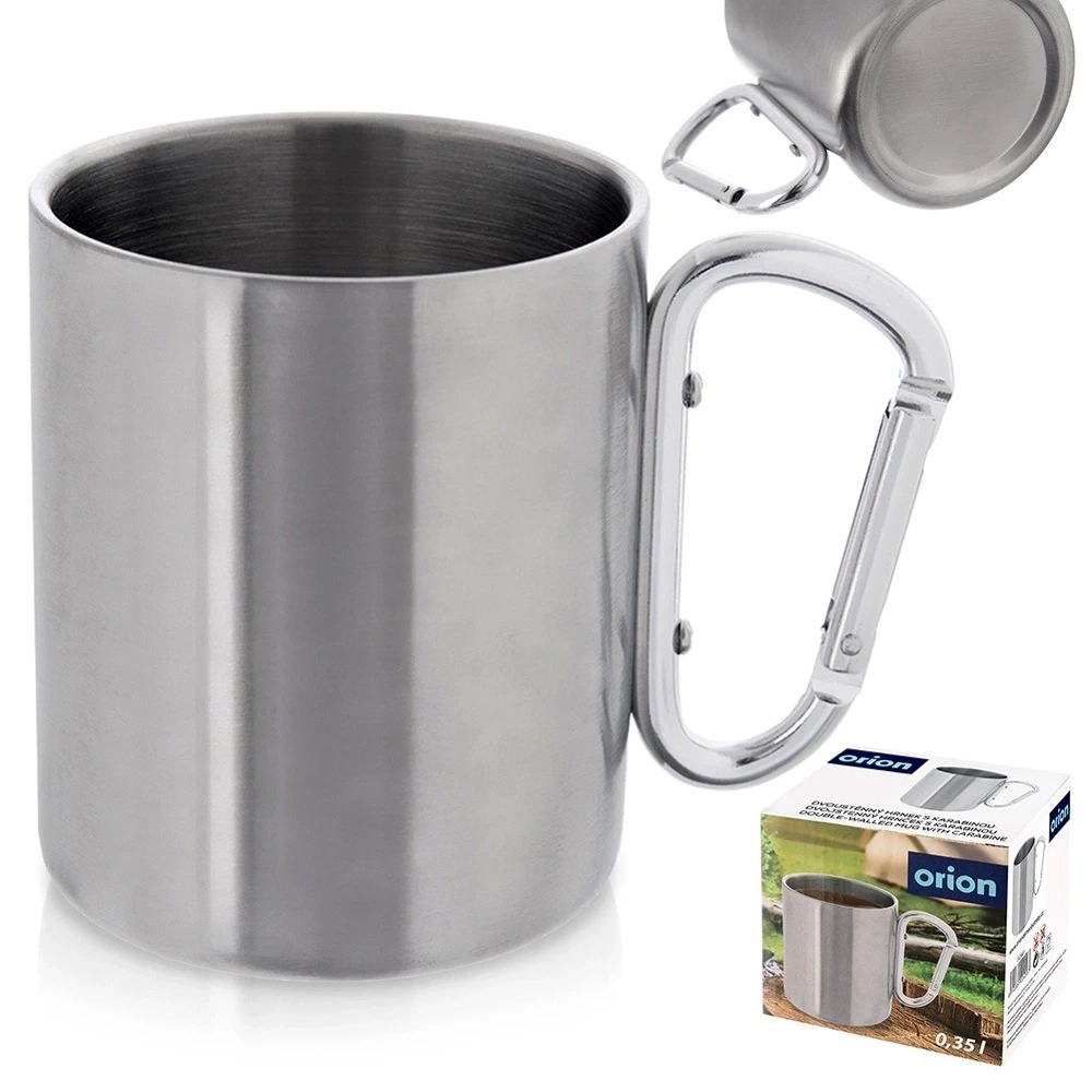 - Stalowy kubek z uchwytem w formie karabińczyka. Niezwykle wytrzymały i wygodny w użytkowaniu. Sprawdzi się na kempingu czy podczas górskich wędrówek.