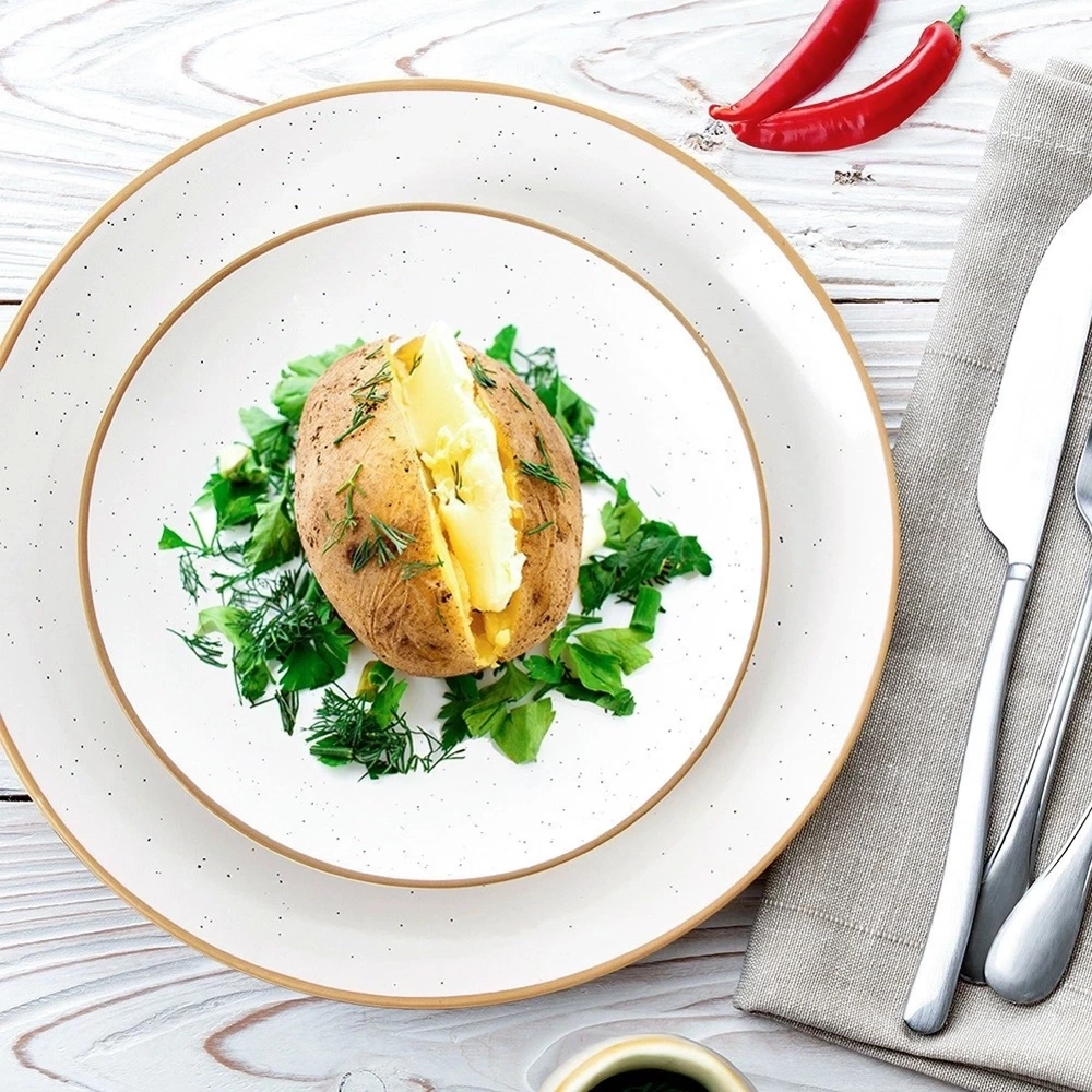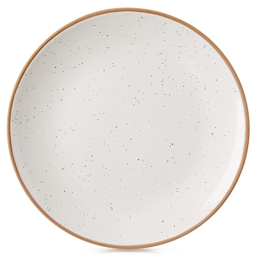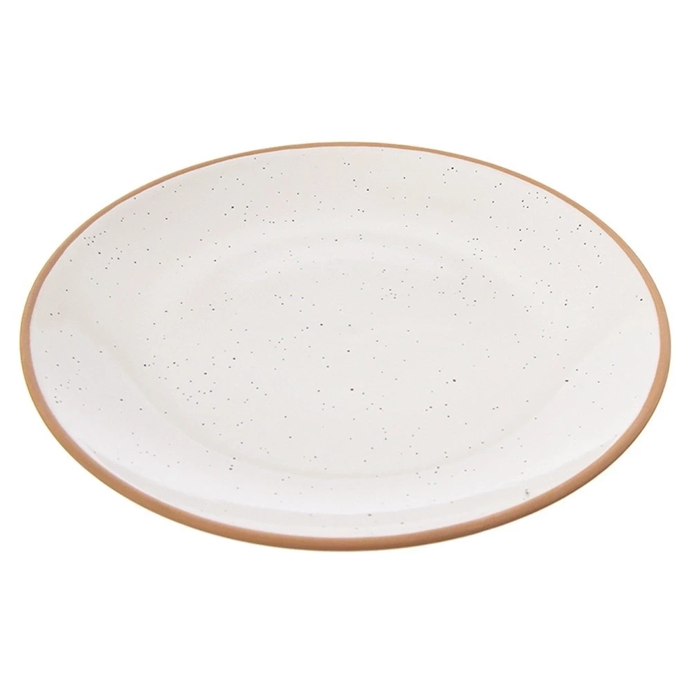- Wykonany z ceramiki - Wykonany z najwyższej jakości ceramiki w beżowym kolorze z nakrapianym wzorem. Posiada naturalny, kamionkowy brzeg, który nadaje mu wyjątkowy charakter i sprawia, że prezentuje się efektownie na każdym stole.
