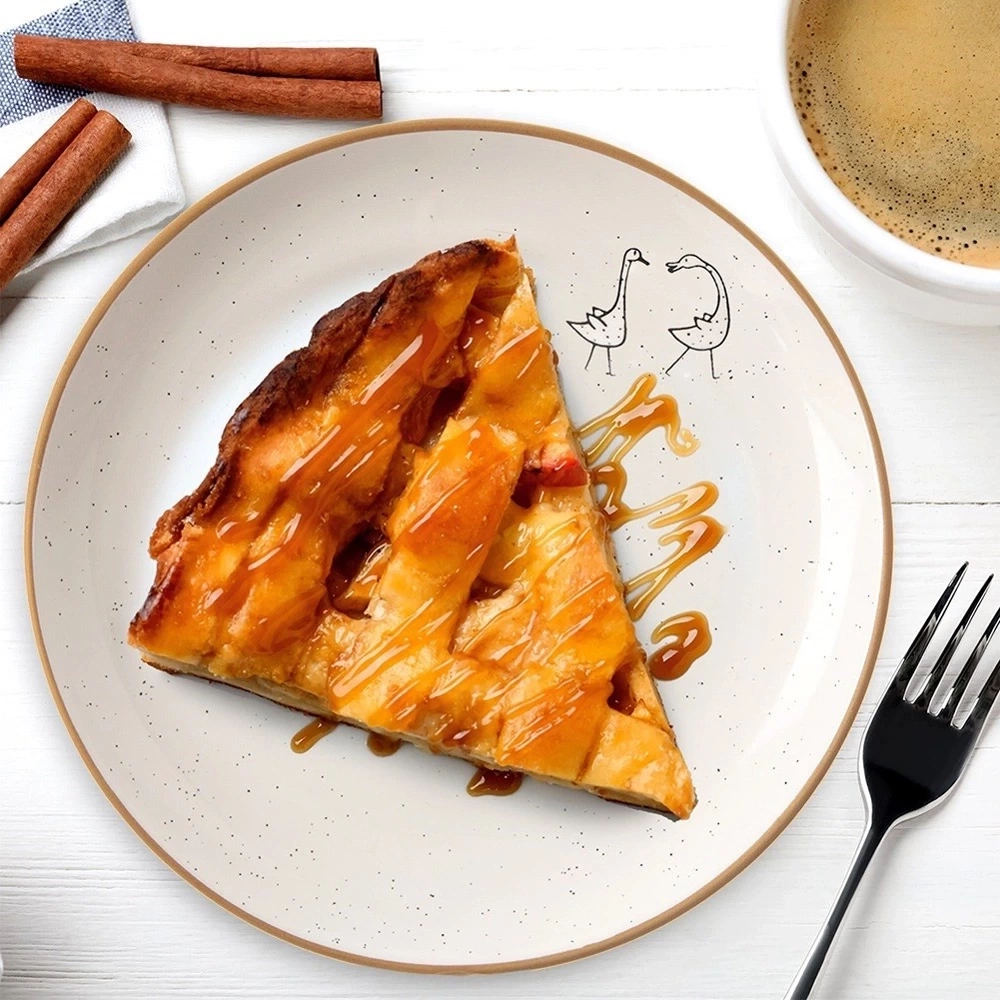 - Mały talerzyk deserowy o średnicy 20 cm - Talerz do serwowania przekąsek i deserów o wymiarach 20 x 20 x 2,5 cm. Talerz posiada urocze wyżłobienie w motywem gąsek.