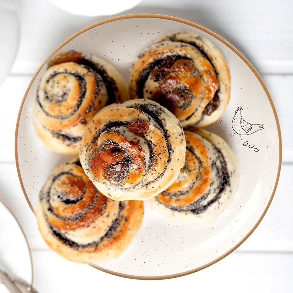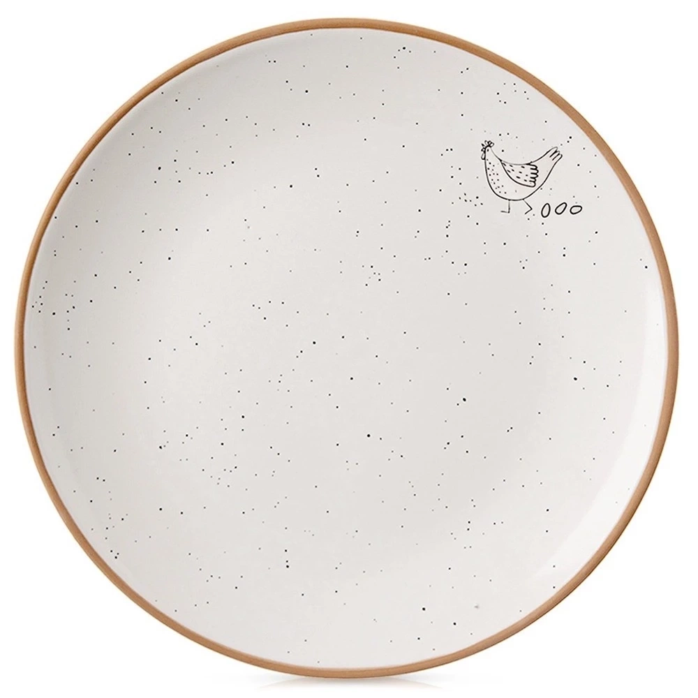 - Mały talerzyk deserowy o średnicy 20 cm - Talerz do serwowania przekąsek i deserów o wymiarach 20 x 20 x 2,5 cm. Talerz posiada urocze wyżłobienie z motywem kurki.