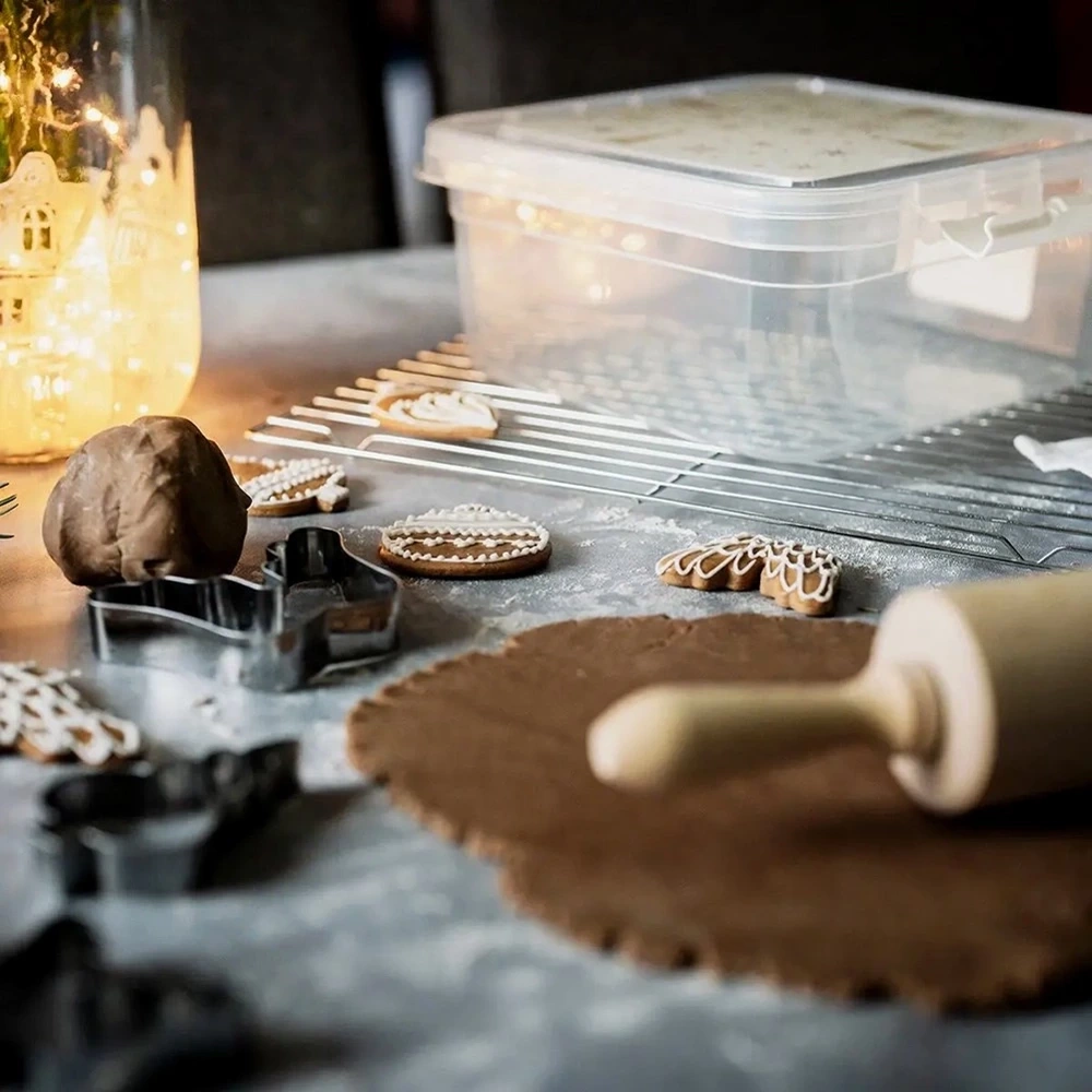 - Uniwersalne zastosowanie - Pojemnik ma uniwersalne zastosowanie, doskonale nadaje się do przechowywania żywności, akcesoriów czy ozdób świątecznych. Świetnie sprawdzi się do przechowywania świątecznych wypieków, takich jak ciastka, pierniki oraz różnego rodzaju słodyczy.