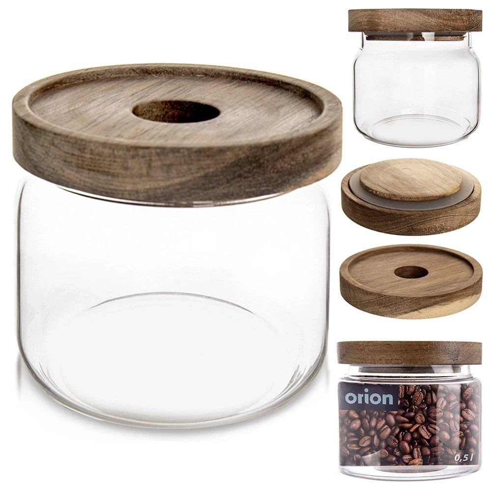 - Pojemnik ze szkła borokrzemowego z pokrywką z drewna akacjowego. Szczelny dzięki silikonowej uszczelce. Idealny do przechowywania różnych produktów spożywczych.