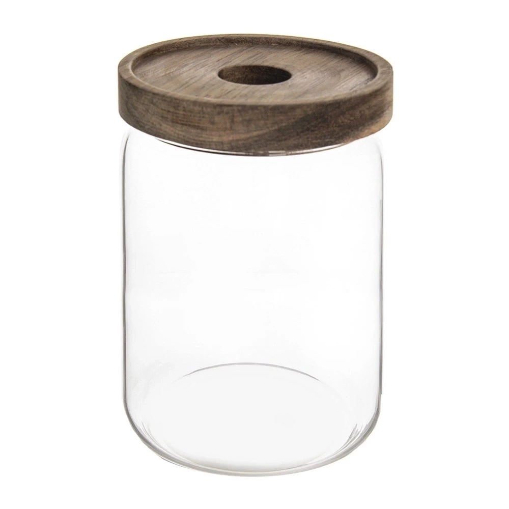 - Pojemnik ze szkła borokrzemowego z pokrywką z drewna akacjowego. Szczelny dzięki silikonowej uszczelce. Idealny do przechowywania różnych produktów spożywczych.