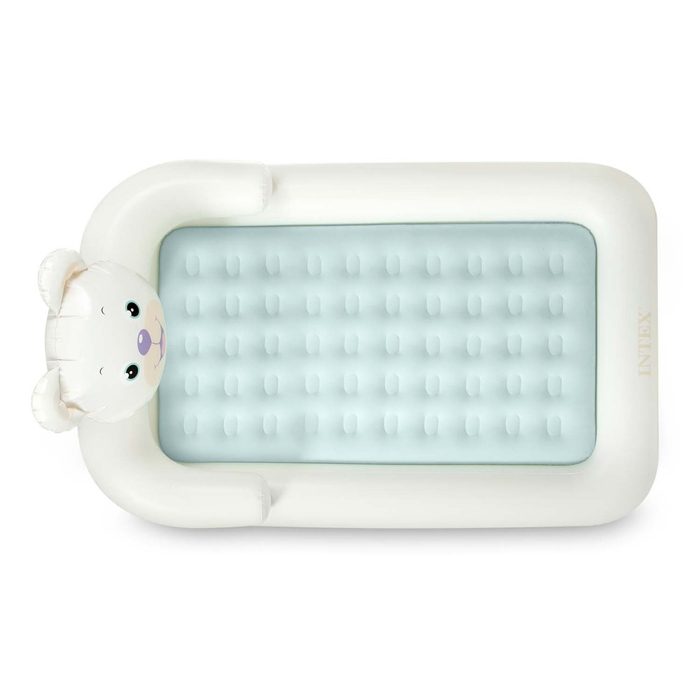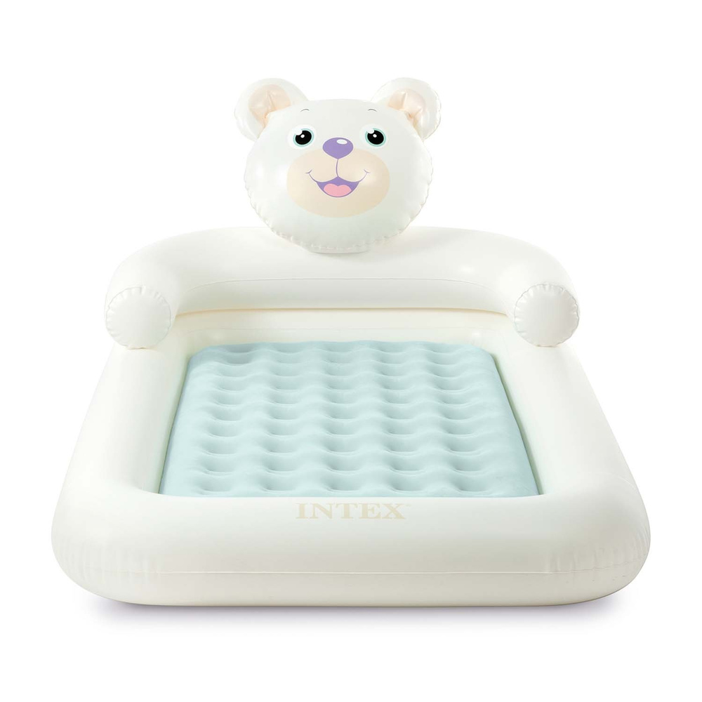 - Materac dmuchany dla dzieci z motywem misia w rozmiarze 114 x 178 x 71 cm z miękką, pluszową powierzchnią do spania. Idealny podczas nocowania poza domem, czy w podróży. Przeznaczony dla dzieci od 3 do 6 roku życia.