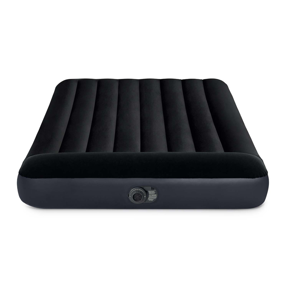 - Klasyczny materac z wbudowaną poduszką i pompką elektryczną firmy INTEX wykonany z mocnego tworzywa PVC.