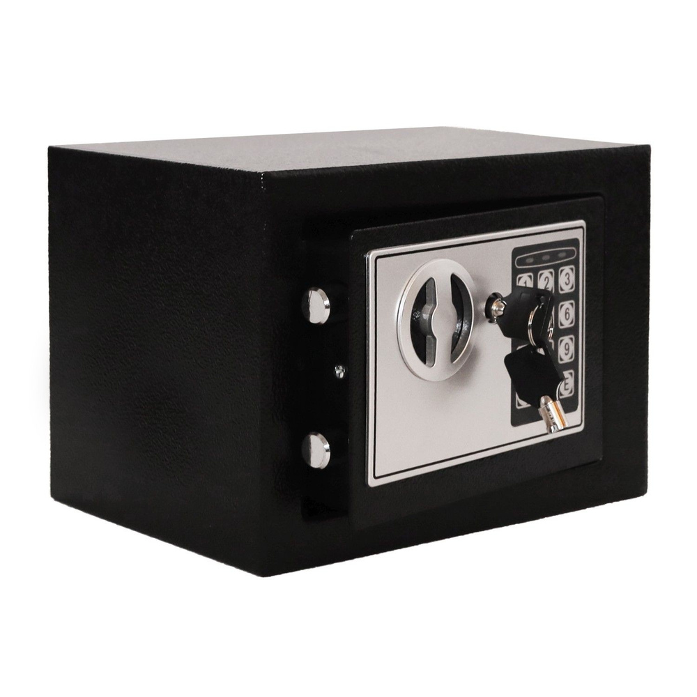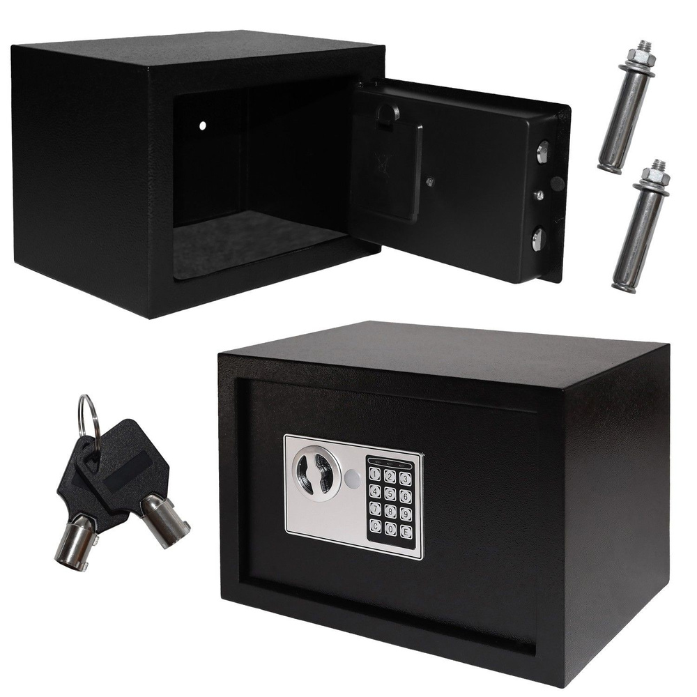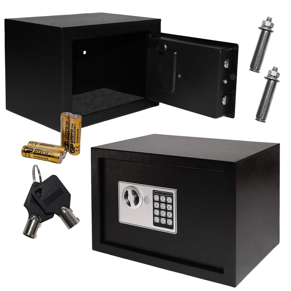 - Sejf domowy 23 x 17 x 17 cm z zamkiem elektronicznym na kluczyk lub kod zapewnia bezpieczeństwo cennych przedmiotów. Kompaktowy rozmiar sprawia, że jest idealny do użytku w domu, oferując wygodny dostęp i wysoki poziom ochrony.