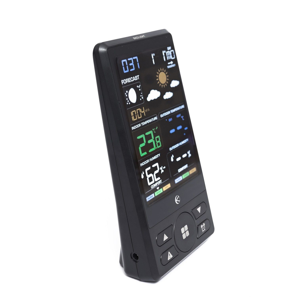 Nasza stacja pogodowa łączy w sobie monitorowanie pogody z funkcjami czasu i daty by można było efektywnie zarządzać swoim dniem.