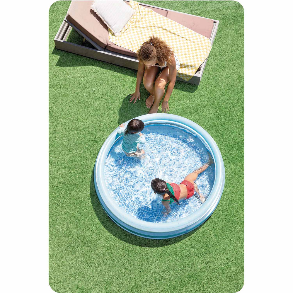 Dmuchany basen ogrodowy Niebieska Mozaika 147x33 cm INTEX 58467 to idealny wybór na letnie dni, zapewniający komfortową przestrzeń do relaksu i zabawy w ogrodzie. Dzięki atrakcyjnemu wzorowi mozaiki w odcieniach niebieskiego, basen wyróżnia się estetycznym wyglądem, który doskonale komponuje się z każdą przestrzenią na świeżym powietrzu.