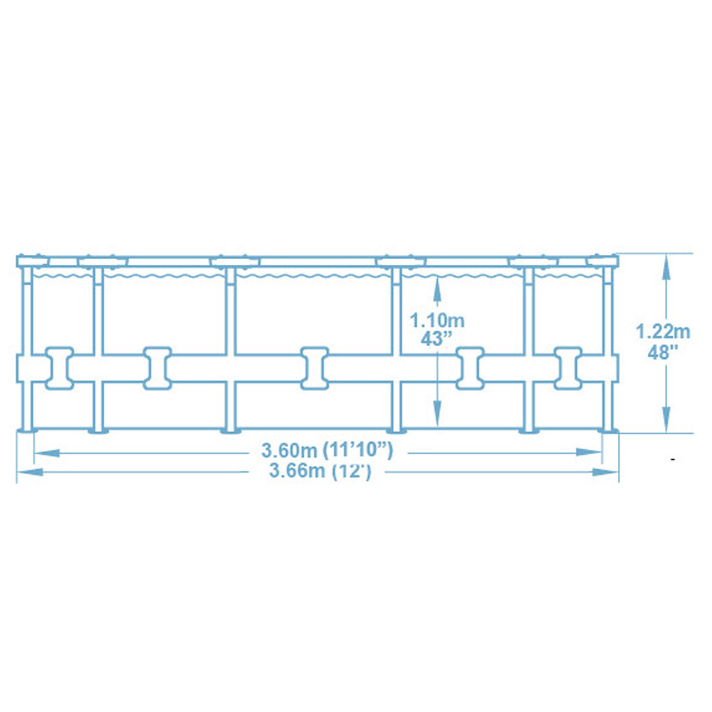 - Basen ogrodowy stelażowy 366 x 122 cm zestaw 18w1 Bestway to kompleksowe rozwiązanie do ogrodu, które zapewnia doskonałą zabawę i relaks na świeżym powietrzu.