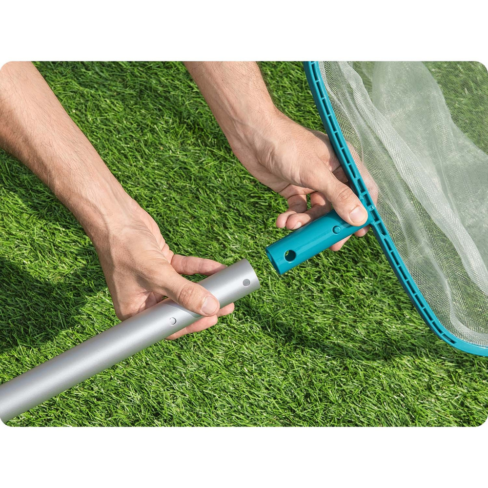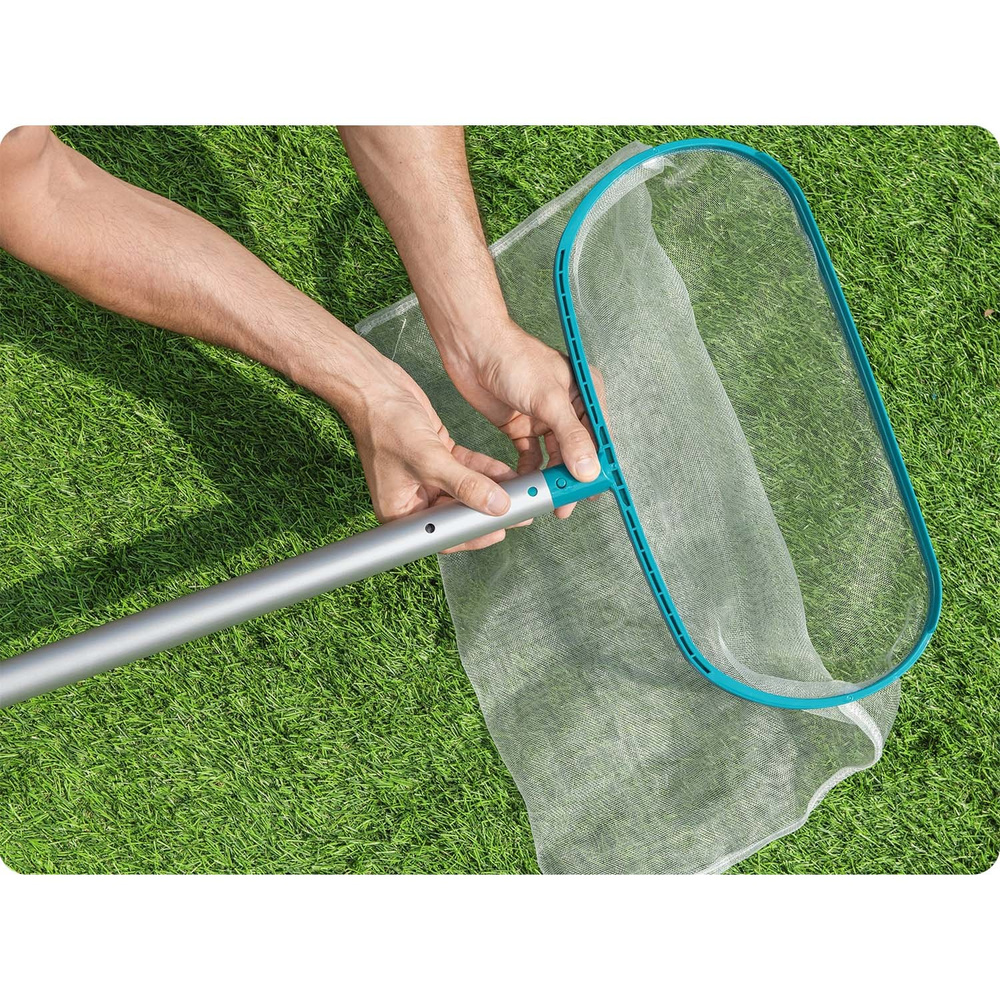 - Siatka do wyławiania nieczystości Bestway 58278N to praktyczne narzędzie, które ułatwia utrzymanie czystości wody w basenie.
