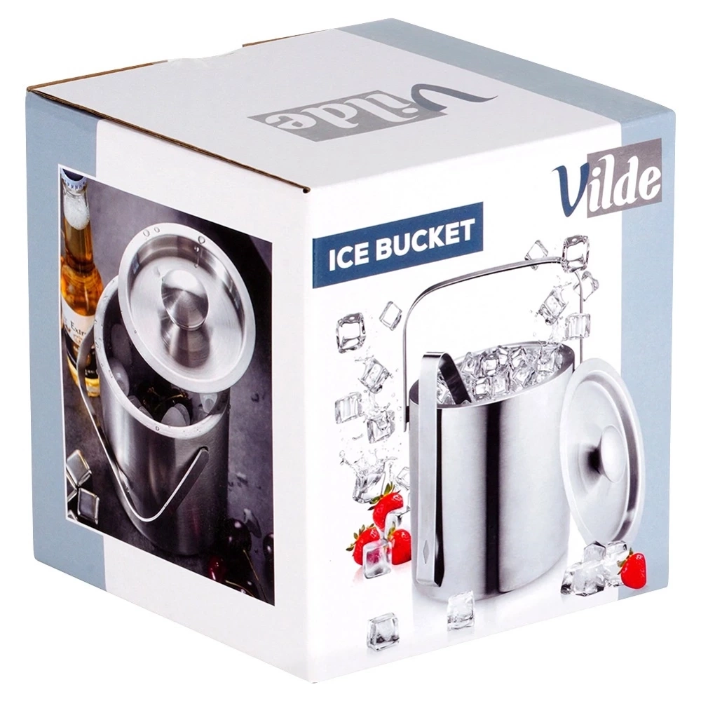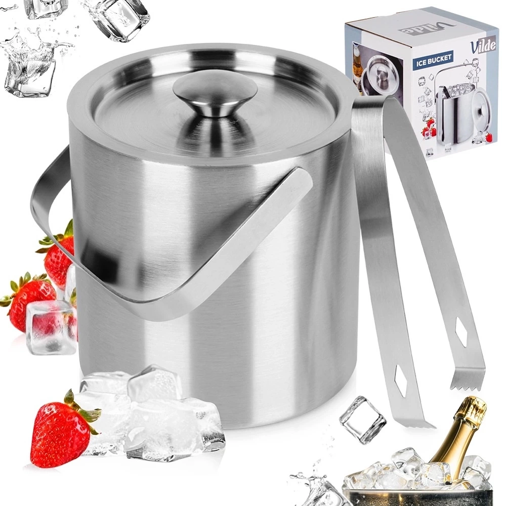 Wiaderko do lodu termiczne ze szczypcami, wykonane z solidnych materiałów. Prezentuje się bardzo efektownie, więc będzie dobrze prezentować się na stole. Wiaderko wykorzystamy do schładzania napojów, szampana, wina oraz innych trunków. Dzięki niemu podczas imprez nasze napoje będą zawsze schłodzone. Pokrywka pozwoli utrzymać dłużej niższą temperaturę w wiaderku, a szczypce zapewnią wygodne i higieniczne wyjmowanie lodu oraz umieszczanie go w szklance. Nadaje się do każdego grilla, imprezy, baru, wesela, imprezy cateringowej, restauracji, hotelu lub ogrodu. Oryginalny produkt marki Vilde. Wyprodukowano zgodnie z europejskimi standardami.