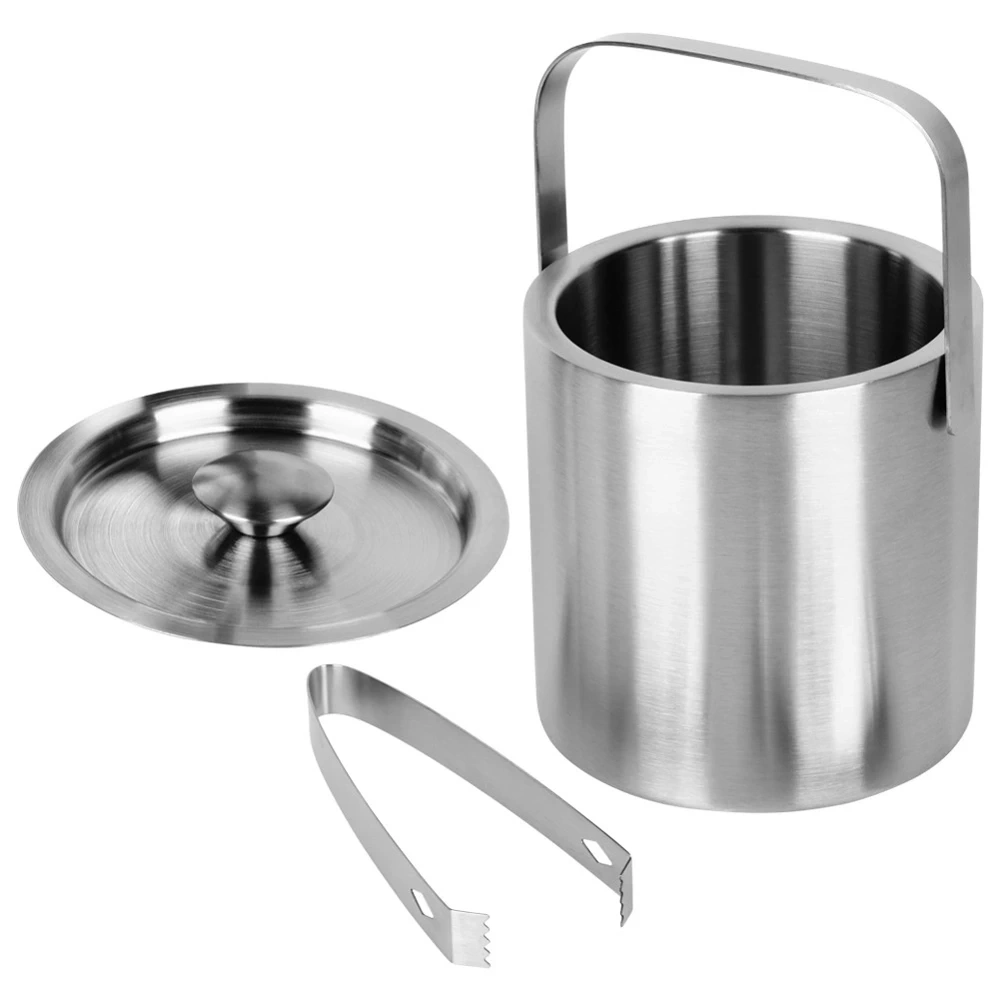 - Stalowy pojemnik na lód z pokrywą, szczypcami i ze składanym uchwytem. Posiada podwójną ściankę, dzięki czemu dłużej utrzymuje temperaturę wewnątrz.