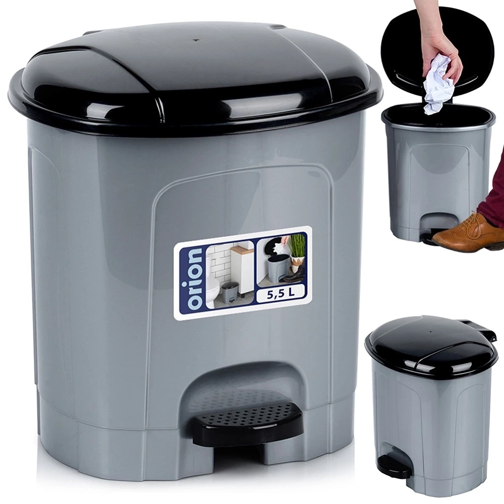 - Kosz na śmieci o pojemności 5,5 l - Kosz na odpady i śmieci z otwieraną pokrywą na pedał. Kosz ma pojemność 5,5 l i wymiary zewnętrzne 24 x 23,5 x 27 cm.