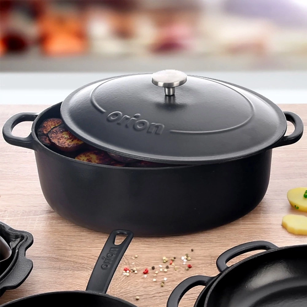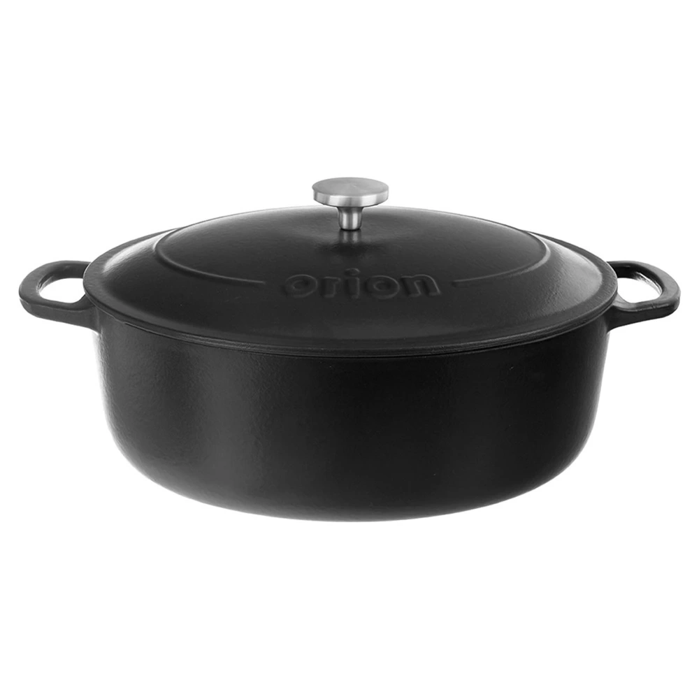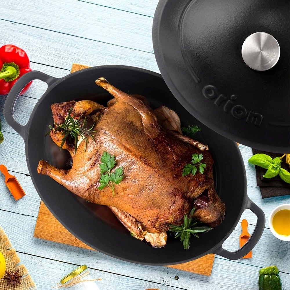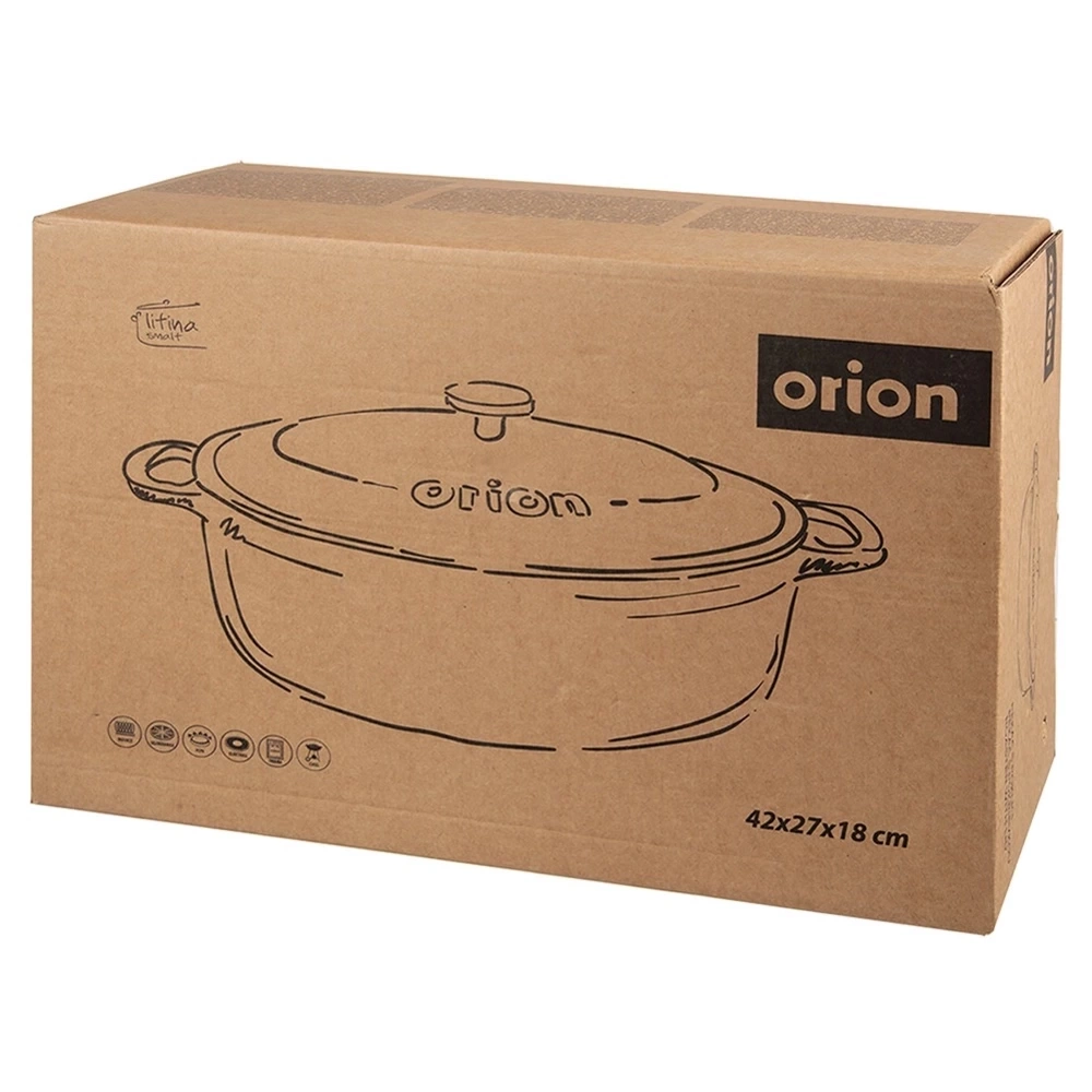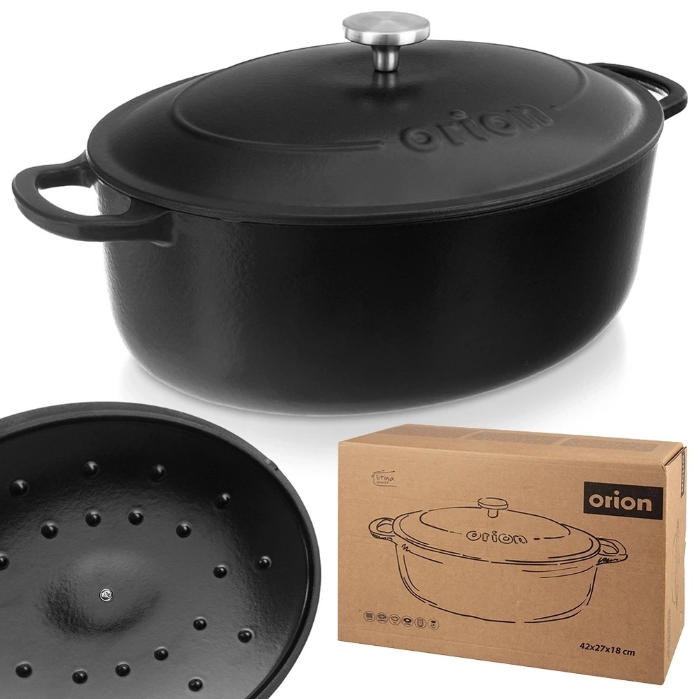 Brytfanna z pokrywką znajdzie szerokie zastosowanie w kuchni. Wykonana z wytrzymałych materiałów. W brytfannie przygotujemy różnego rodzaju mięsa, ryby czy warzywa. Zestaw ten jest niezwykle przydatny w każdej kuchni. Brytfanna jest niezwykle solidna i ciężka. Żeliwo rozgrzewa się równomiernie i długo utrzymuje ciepło, dzięki czemu serwowane dania dłużej będą ciepłe. Oryginalny produkt czeskiej marki Orion. Wyprodukowano zgodnie z europejskimi standardami