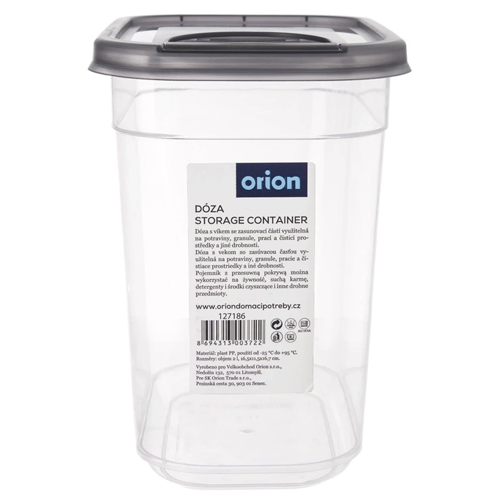 Pojemnik na produkty sypkie z dozownikiem. Pozwoli na wygodne dozowanie i przechowywanie produktów. W wygodny sposób sprawdzimy zawartości pojemnika bez konieczności otwierania go. Pozwoli na odpowiednie przechowywanie produktów, wprowadzając ład i porządek do kuchni i łazienki. Oryginalny produkt czeskiej marki Orion. Wyprodukowano zgodnie z europejskimi standardami.
