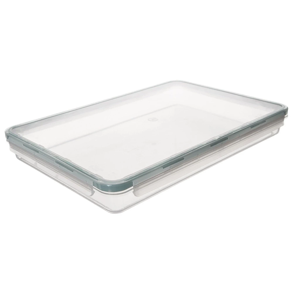 - Przezroczysty pojemnik z silikonową uszczelką w pokrywie. Szczelna pokrywa zamykana na klipsy. Nadaje się do lodówki, mikrofalówki i zmywarki.