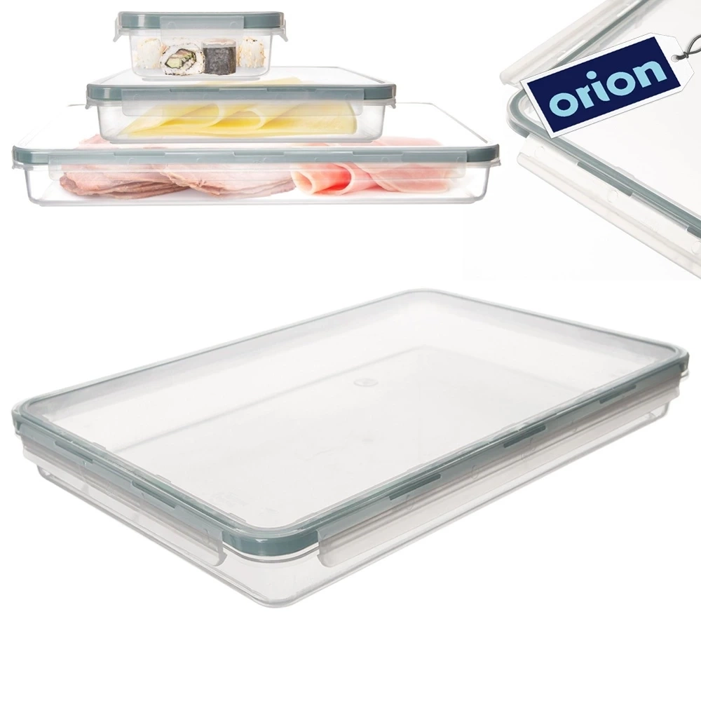 Niski pojemnik na żywność idealny do przechowywania, podgrzewania i transportowania różnych produktów. Posiada pokrywkę z uszczelką, która zapewnia szczelność i chroni przechowywane przedmioty przed wilgocią, powietrzem oraz innymi czynnikami zewnętrznymi. Oryginalny produkt czeskiej marki Orion. Wyprodukowano zgodnie z europejskimi standardami.