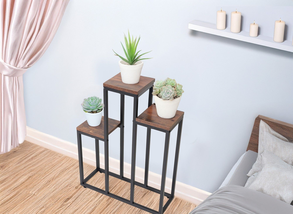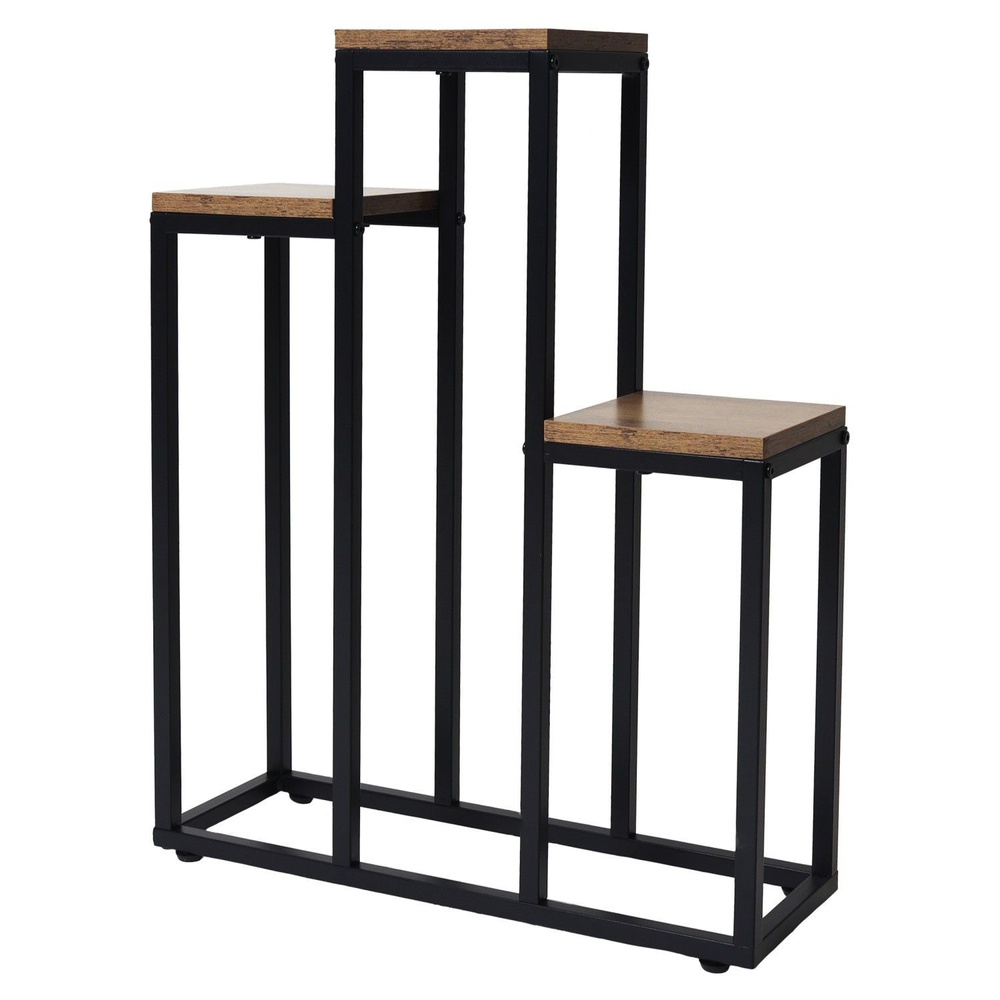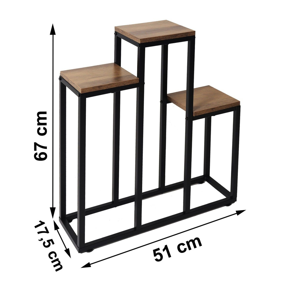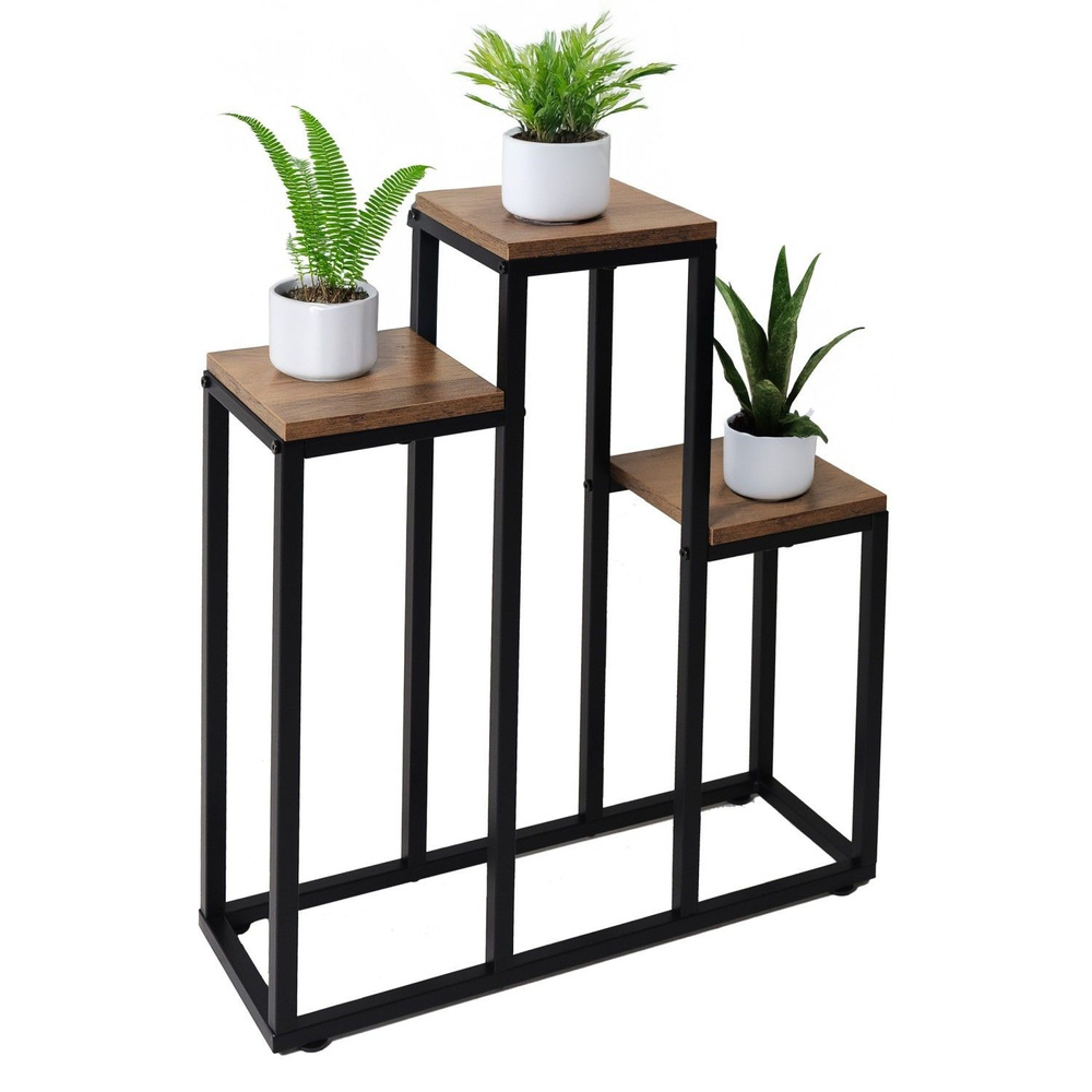 Kwietnik stojący metalowy piętrowy stojak na 3 kwiaty regał dąb rustykalny