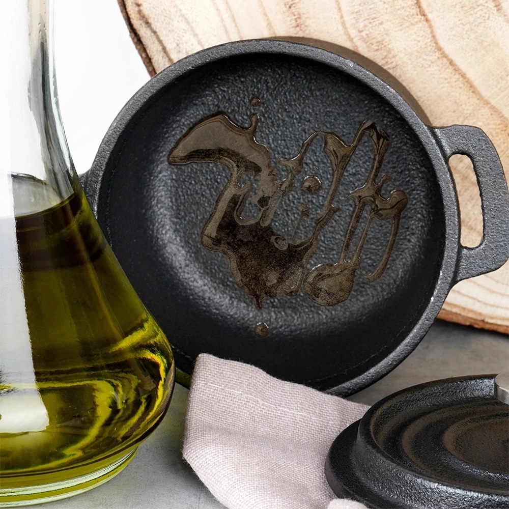 - Mały garnek żeliwny do serwowania - Mały garnek żeliwny o średnicy 10 cm i pojemności maksymalnej 250 ml w formie kokilki do zapiekania. Idealny do serwowania i zapiekania małych porcji zup, gulaszy, zapiekanek i deserów. Garnek bez pokrywki ma wymiary 13 x 10 x 4,8 cm, wysokość z pokrywką wynosi 7,5 cm.