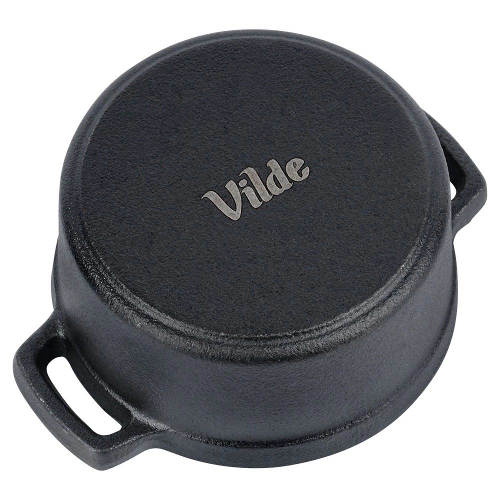 Naczynie żeliwne do zapiekania i serwowania potraw. Wykonany z trwałego odlewu żeliwa, równomiernie rozprowadza ciepło i długo utrzymuje wysoką temperaturę, co czyni go niezawodnym w przygotowywaniu posiłków na piecu, ogniu oraz w piekarniku. Przydatny zarówno w domu, jak i w gastronomii. Oryginalny produkt marki Vilde. Wyprodukowano zgodnie z europejskimi standardami.
