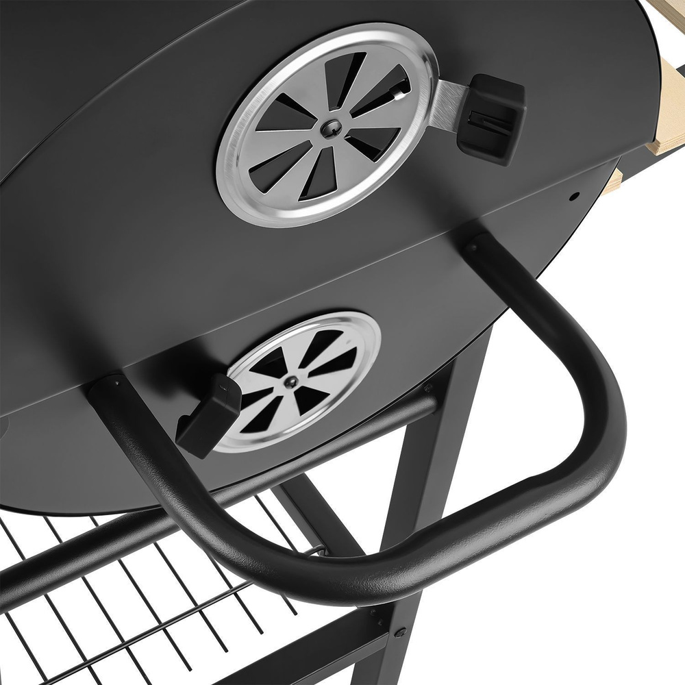 Idealna propozycja dla miłośników tradycyjnego grillowania. Grill ogrodowy, na węgiel lub brykiet, pozwala na przyrządzenie potraw na naturalnym ogniu, nadając potrawom charakterystyczny smak i aromat. Grill posiada łatwy dostęp do głębokiego, pojemnego paleniska, a zamykana pokrywa z wentylacją ułatwia przygotowanie wielu ulubionych potraw. Stabilna konstrukcja z możliwością transportu na kółkach oraz zamykaną strefą grillowania to dobre rozwiązanie i zabezpieczenie, gdy grillujemy razem z dziećmi.