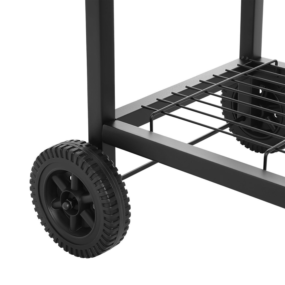 Duży zamykany grill węglowy ogrodowy na kółkach z półkami i paleniskiem