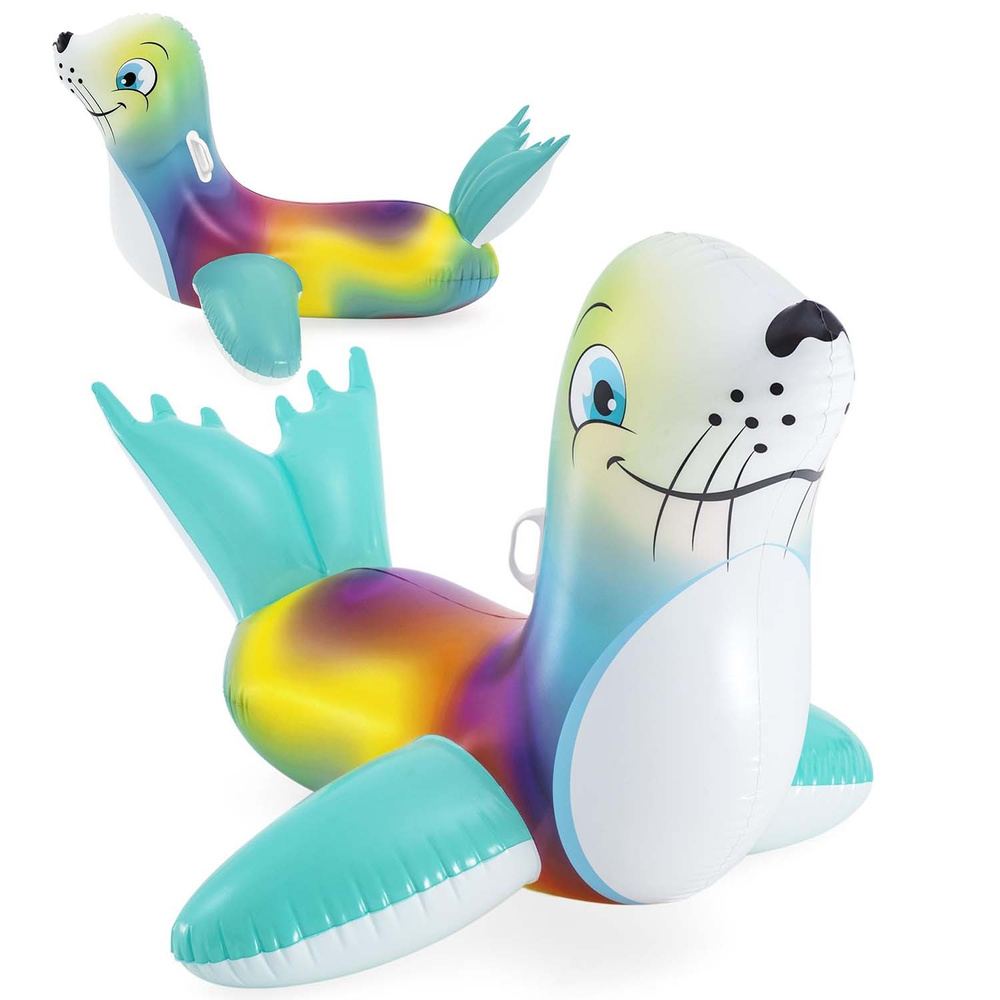 - Dmuchany materac Bestway w kształcie foki o wymiarach 157 x 114 cm, wykonany z wytrzymałego winylu. Wyposażony w solidne uchwyty zapewniające stabilność podczas zabawy. Idealny dla dzieci od 3. roku życia.