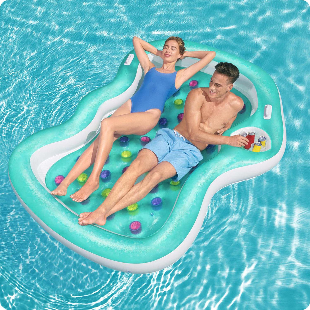 Ciesz się letnim relaksem na wodzie z dwuosobowym materacem do pływania Bestway. Ten przestronny materac został zaprojektowany z myślą o komforcie i wygodzie, umożliwiając wspólny wypoczynek na wodzie z bliską osobą.