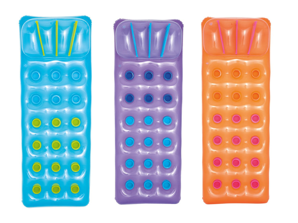 - Dmuchany materac do pływania Bestway o wymiarach 188 x 71 cm, dostępny w trzech kolorach. Wykonany z wytrzymałego winylu, posiada wbudowaną poduszkę i przezroczystą powierzchnię. Idealny do relaksu na wodzie