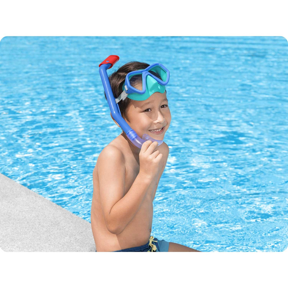 - Niebieski zestaw do nurkowania Bestway, składający się z maski i rurki, zapewnia komfort oraz bezpieczeństwo podczas eksploracji podwodnego świata. Wykonany z wysokiej jakości materiałów, doskonale dopasowuje się do twarzy, gwarantując szczelność i wygodę