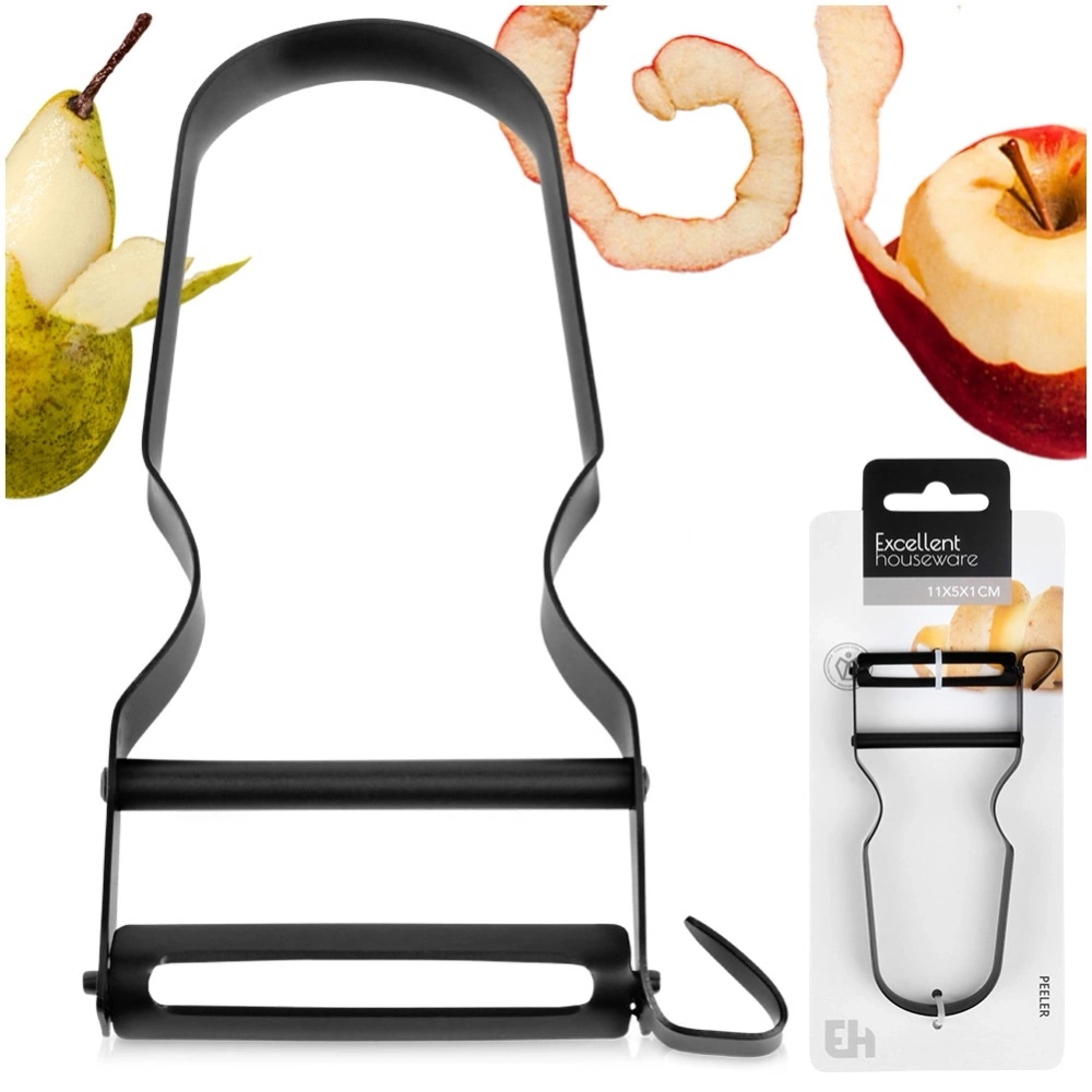 - Obieraczka kuchenna, za pomocą której w łatwy sposób obierzemy ulubione owoce i warzywa. Wykonana ze stali nierdzewnej, malowanej na czarny kolor.