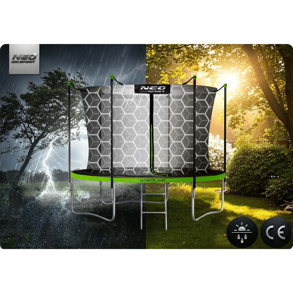 - w zestawie: trampolina ogrodowa, siatka zabezpieczająca, metalowa drabinka, instrukcja obsługi
