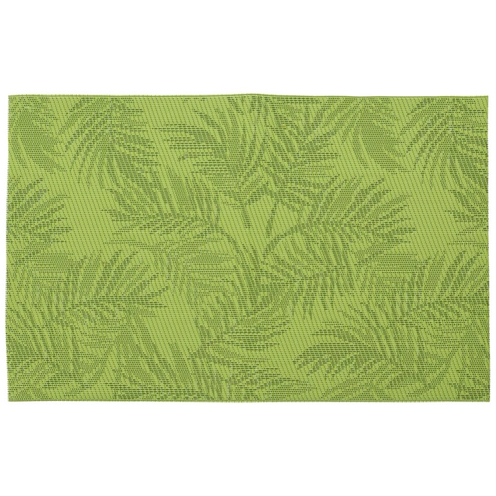 - Prostokątna podkładka kuchenna w zielonym kolorze z motywem liści. Stanowi piękne tło dla zastawy stołowej i sztućców. Podkładka ma wymiary 45x30 cm.