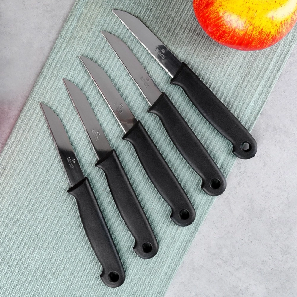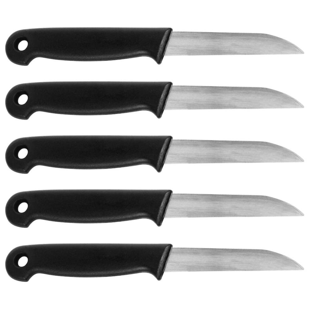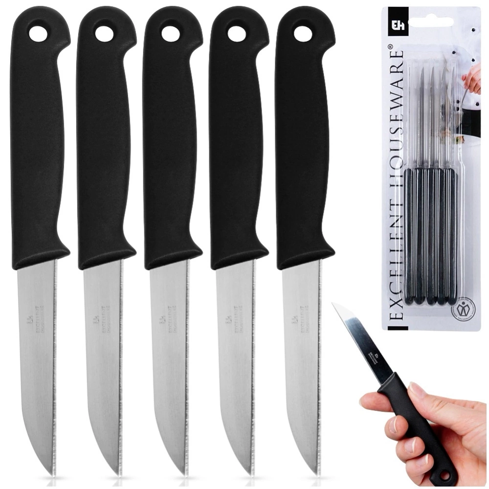 - Zestaw 5 szt. uniwersalnych noży kuchennych z ostrzem o długości 7 cm. Wykonane ze stali nierdzewnej. Polecane szczególnie do obierania owoców i warzyw.