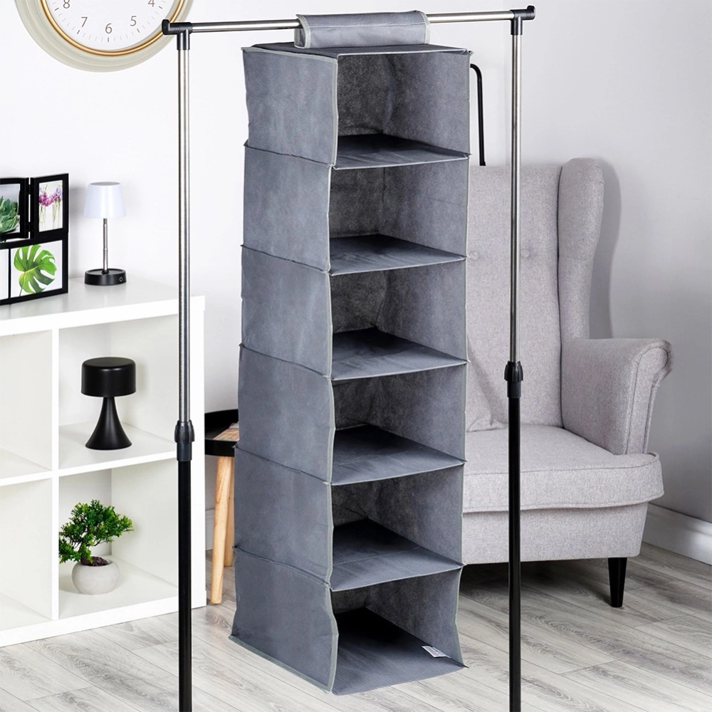- Organizer wiszący z 6 półkami ułatwia przechowywanie odzieży, obuwia, ręczników itp., pozwalając na lepsze zorganizowanie przestrzeni w szafie.