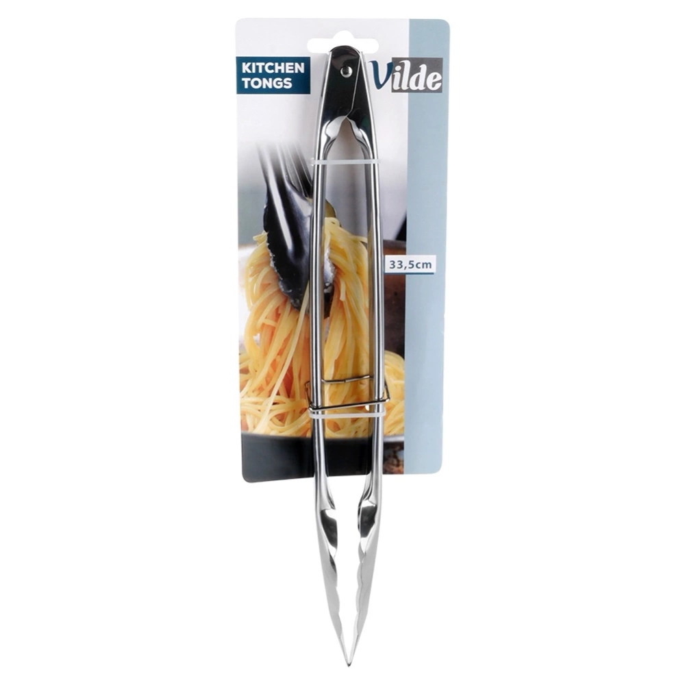 Szczypce kuchenne o uniwersalnym zastosowaniu. Wyjątkowo przydatne w kuchni jak i podczas grillowania. Mogą być używane do odwracania mięsa na patelni, wyciągania gotowanych warzyw z wrzącej wody, mieszania sałatek, podawania potraw czy nawet do obsługi gorących naczyń z piekarnika. Oryginalny produkt marki Vilde. Wyprodukowano zgodnie z europejskimi standardami.