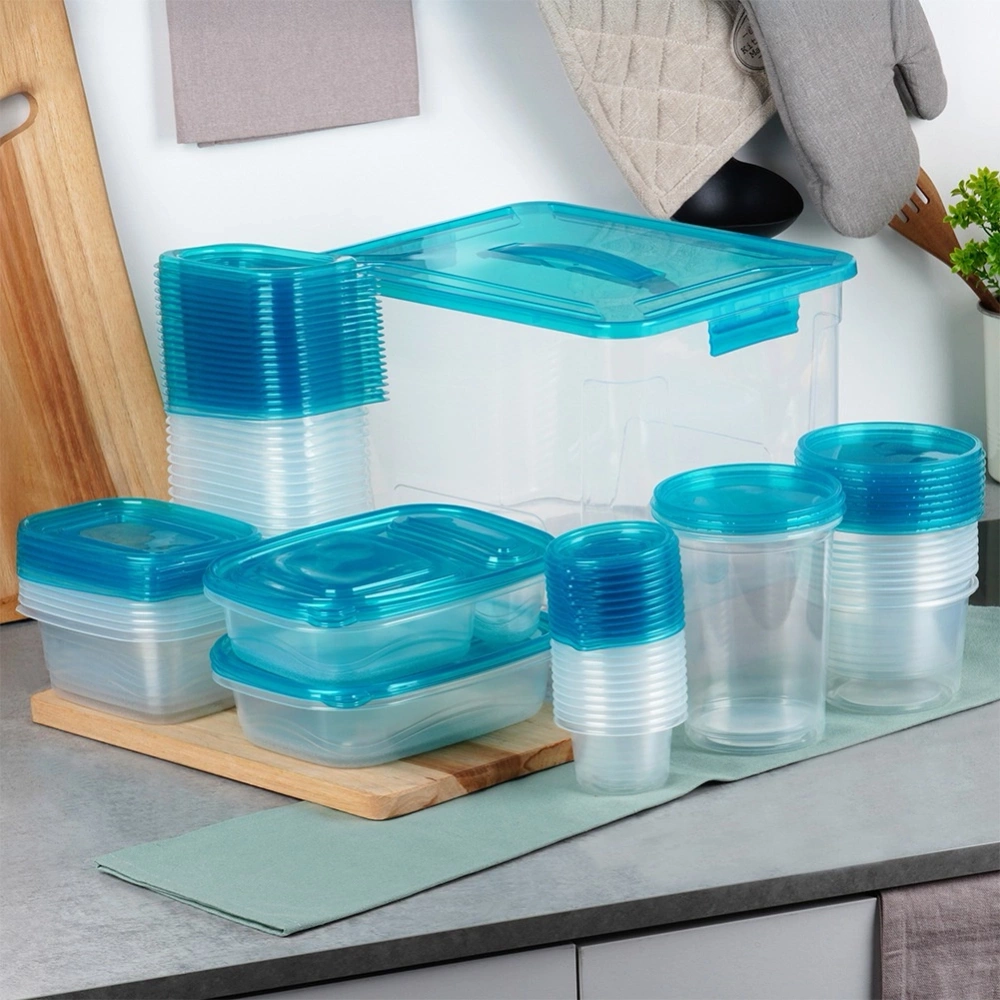 - Zestaw 50 pojemników kuchennych w 9 różnych rozmiarach. Idealne do przechowywania żywności oraz produktów sypkich. Nadają się do zmywarki, lodówki, zamrażarki oraz mikrofalówki.