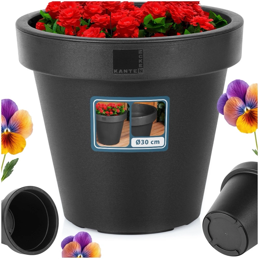 - Doniczka ogrodowa wykonana z tworzywa pozyskanego w 90% z recyklingu. Odporna na warunki atmosferyczne. Idealna do ogrodu, na taras czy podjazd przed domem.