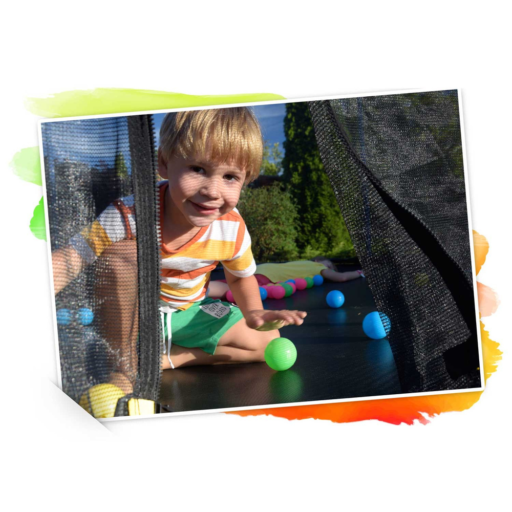 - Trampolina z siatką i drabinką zapewnia bezpieczną zabawę na świeżym powietrzu. Dzięki solidnej konstrukcji i funkcjonalnej siatce ochronnej, jest idealnym wyborem do ogrodu, oferując radość i bezpieczeństwo dla całej rodziny.